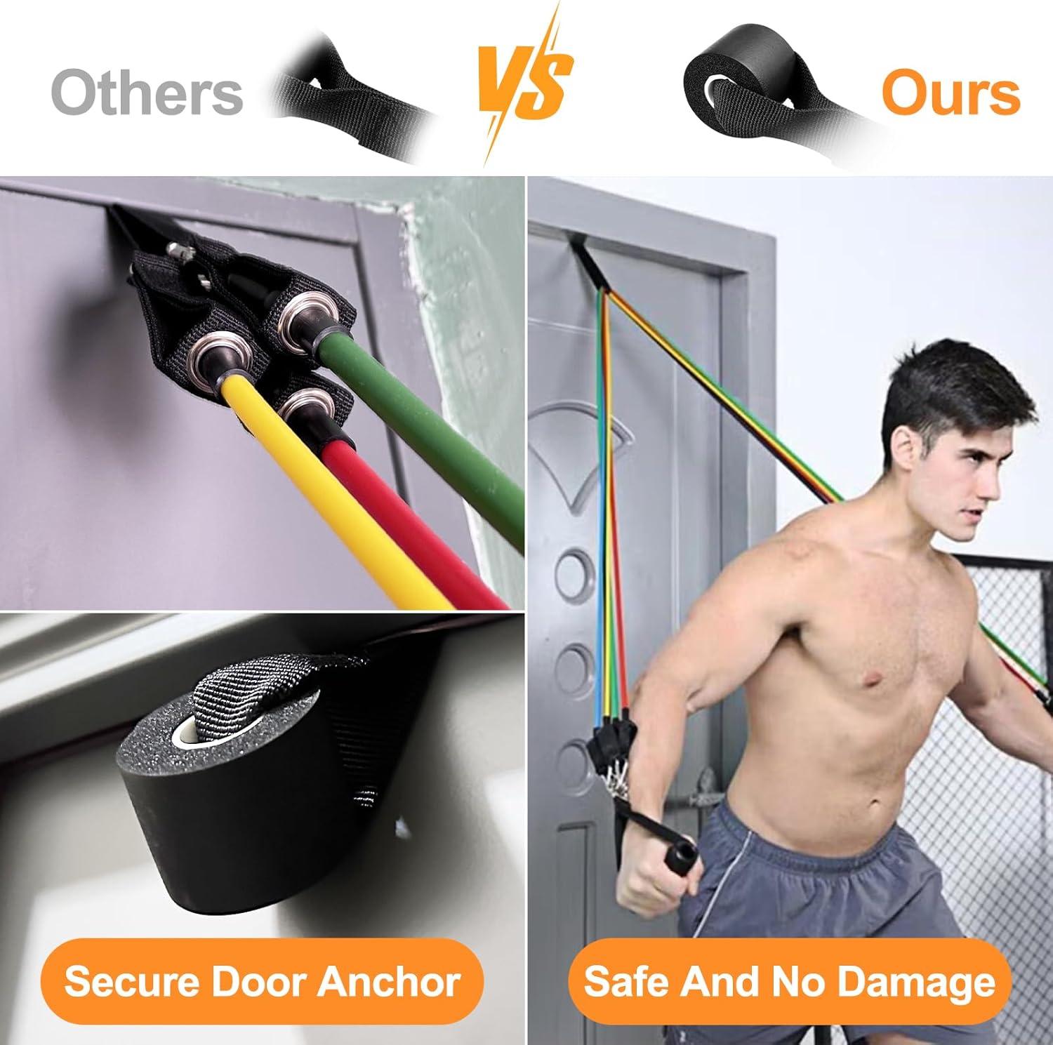 *Convenient Personal Home Gym*:Our resistance band set includes a door anchor and two ankle straps to allow you to perform the widest variety of resistance training exercises possible. Perform full body workouts,strengthen your core,and isolate specific muscle groups. Great for toning your quads,glutes,buttocks,abs,biceps,triceps,legs and knees. Works well with various exercise programs.